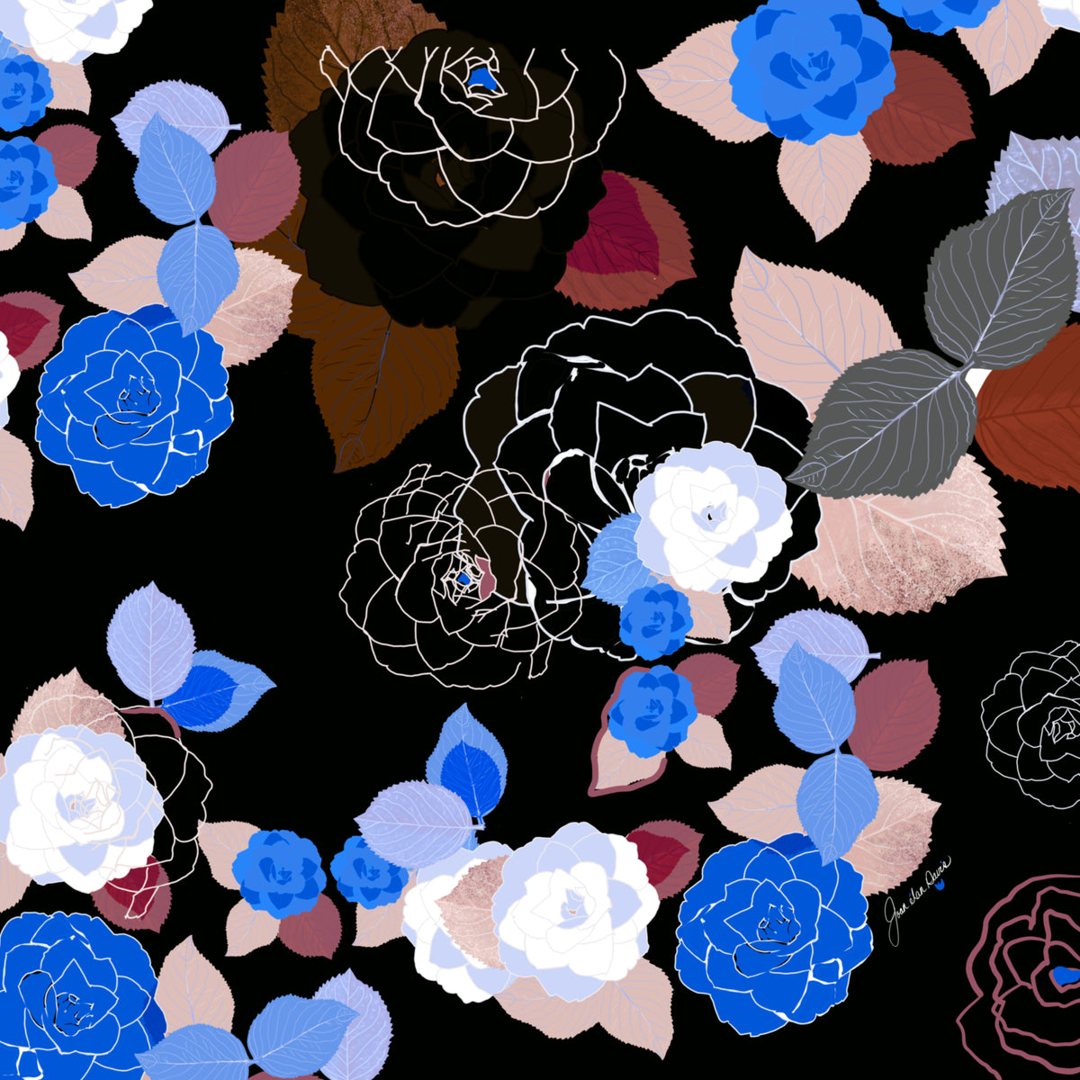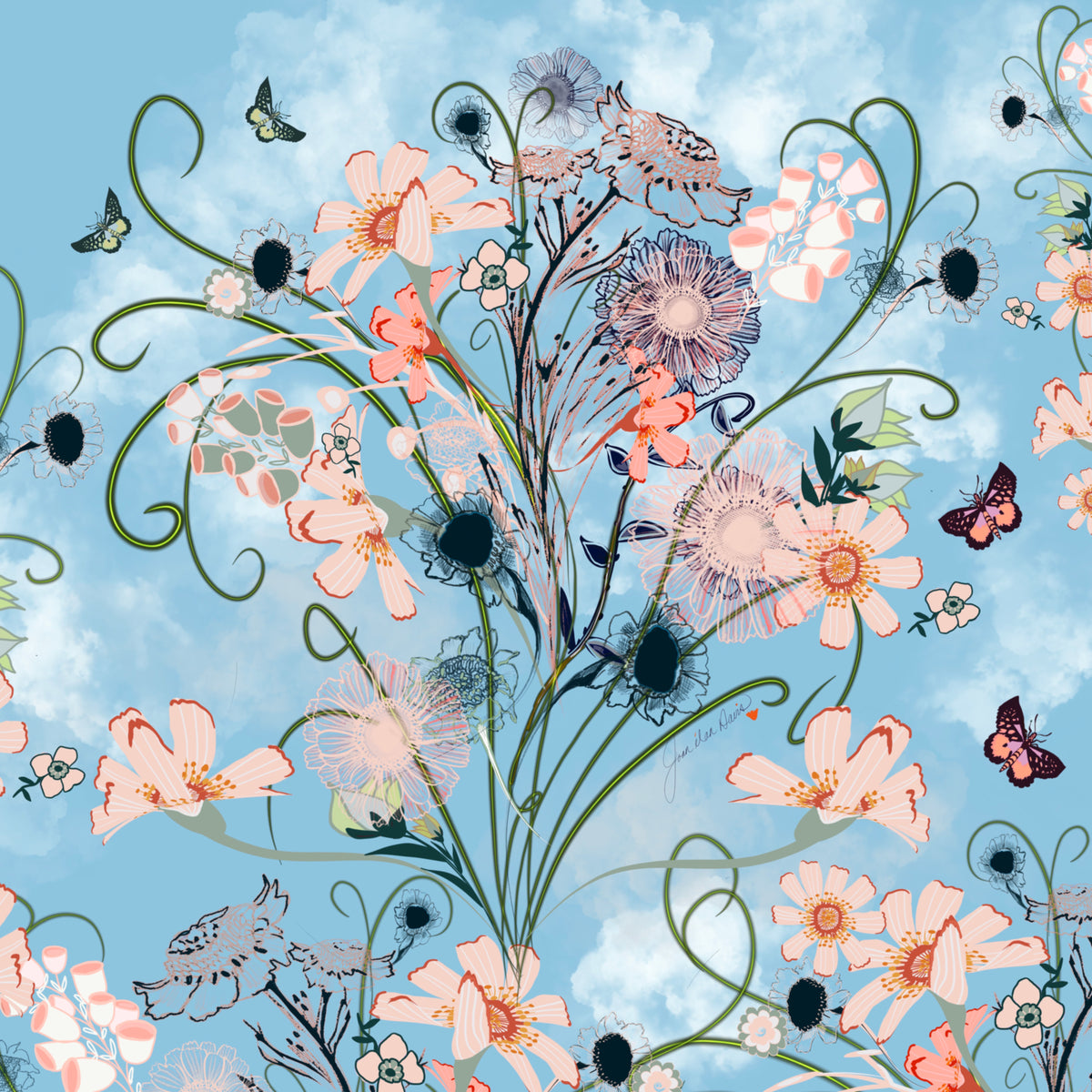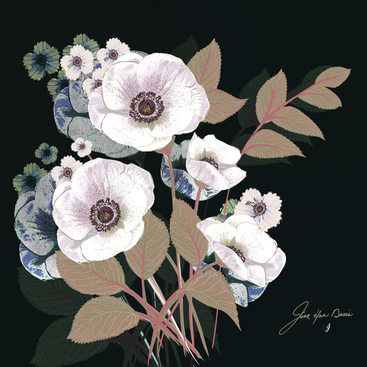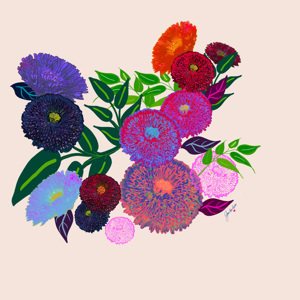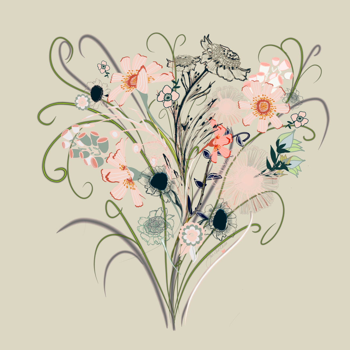 Joan Davis begins her Digital Florals with hand-drawn sketches and photo references,