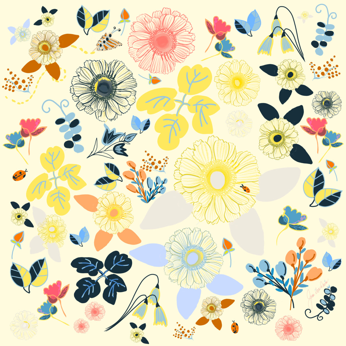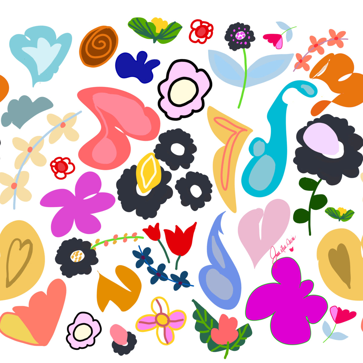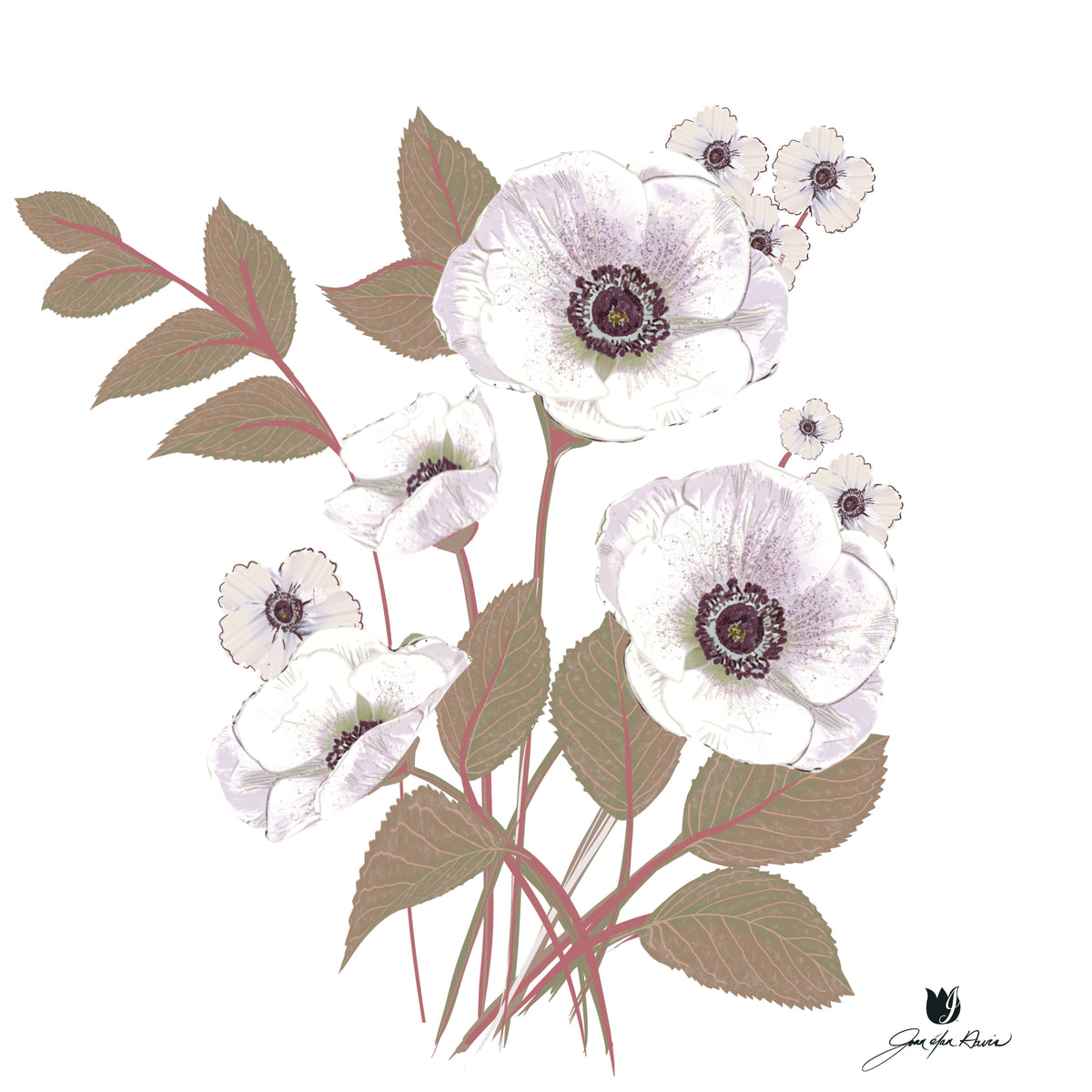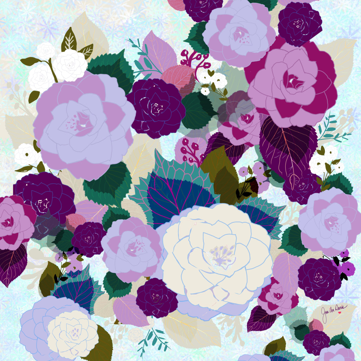 Joan Davis begins her Digital Florals with hand-drawn sketches and photo references,