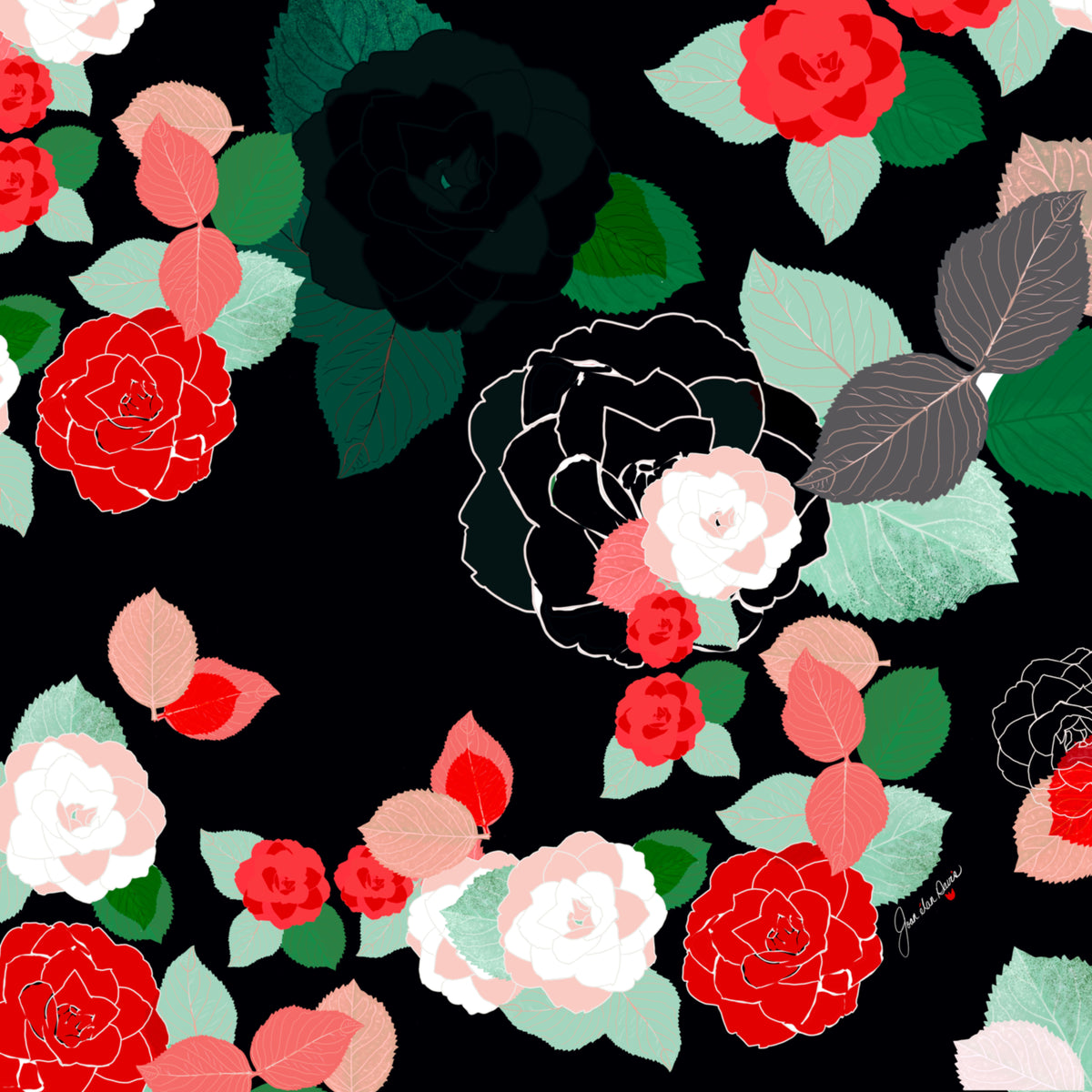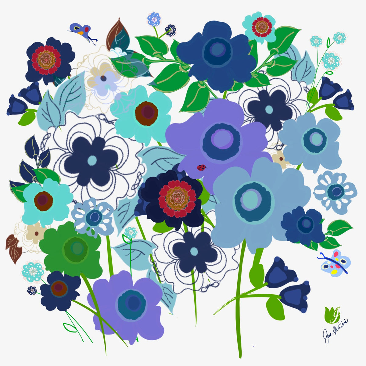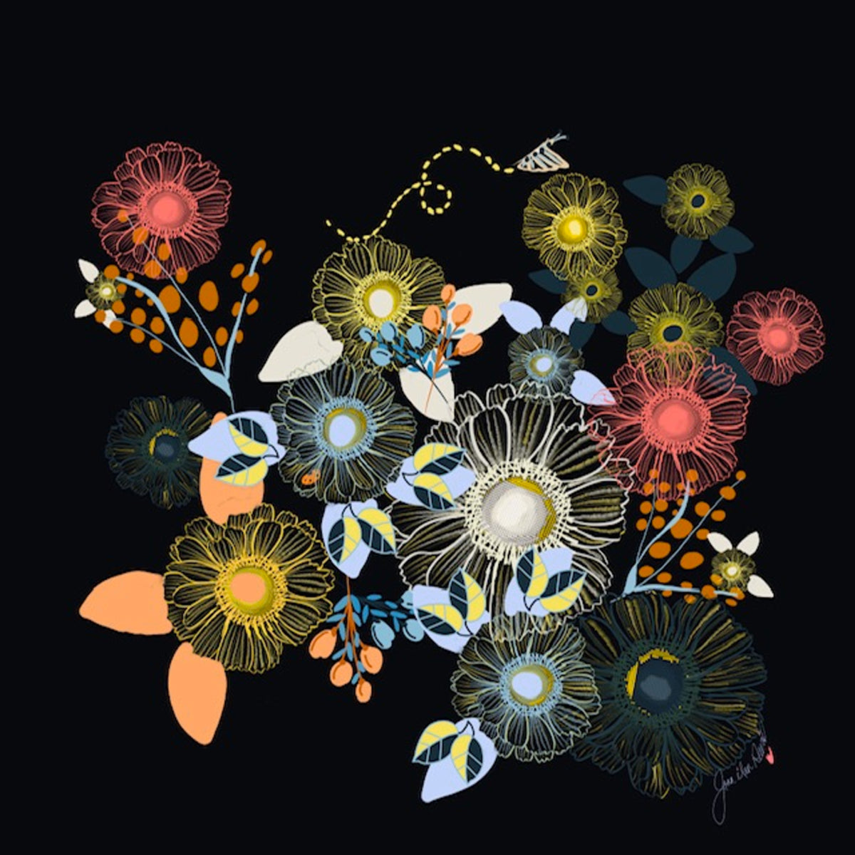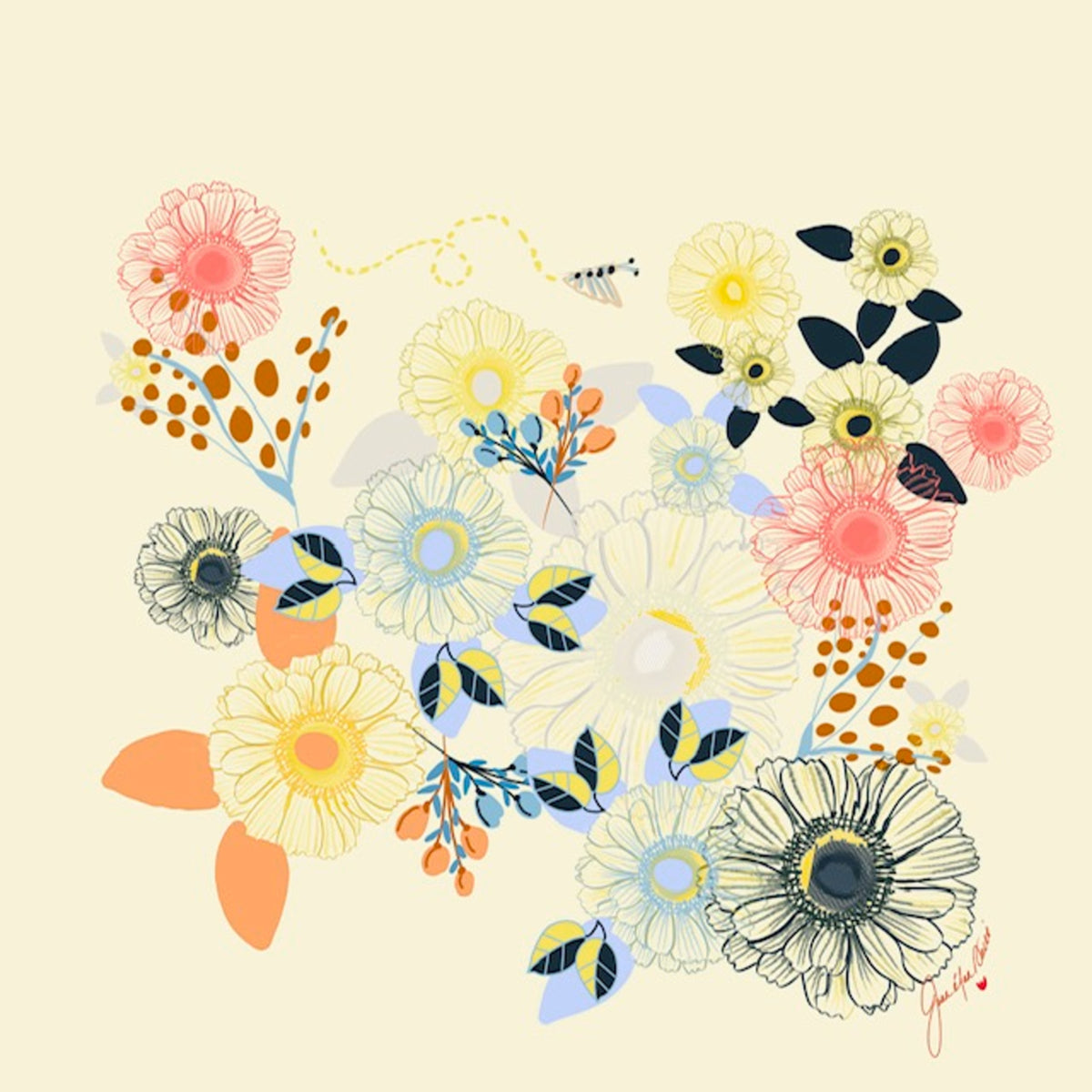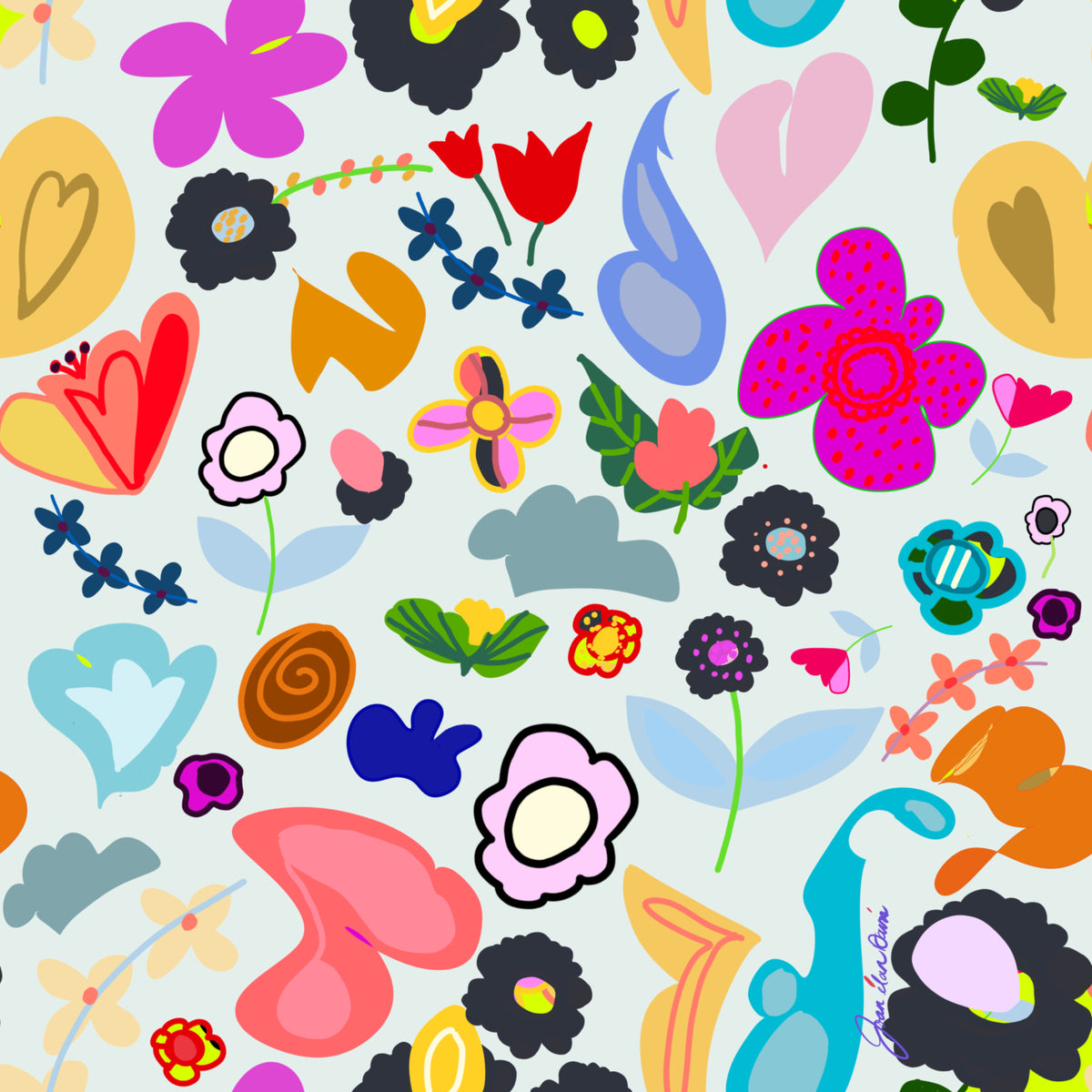 Joan Davis begins her Digital Florals with hand-drawn sketches and photo references,