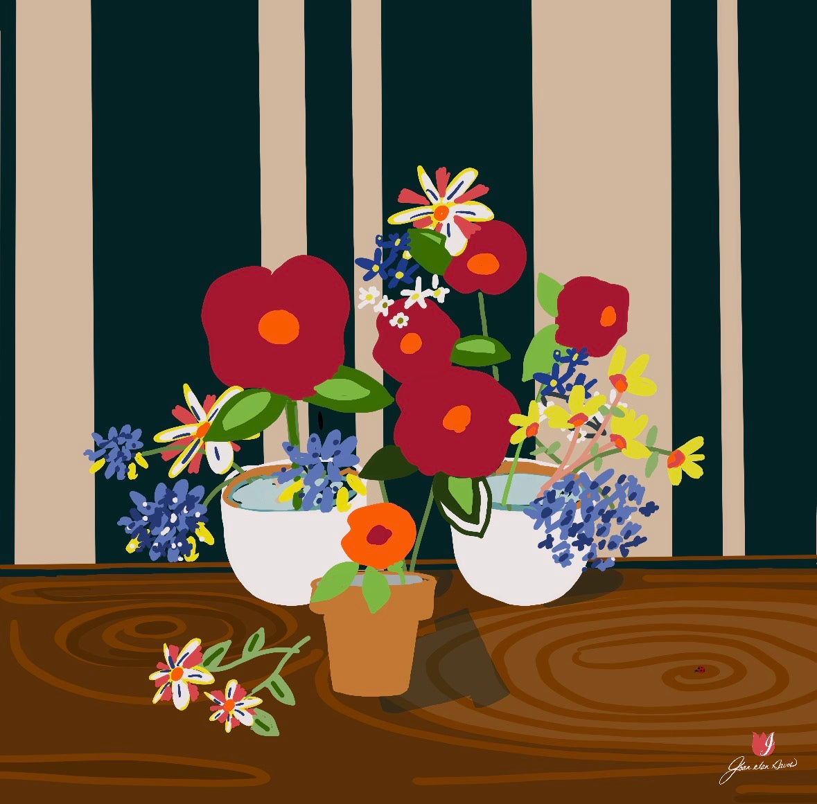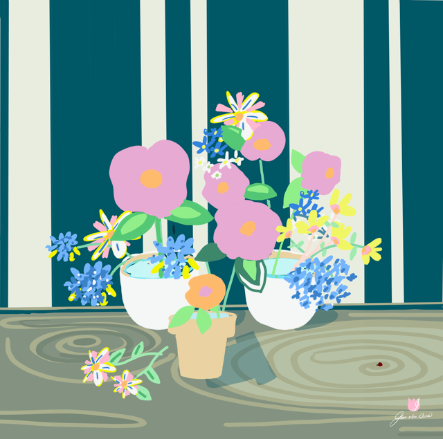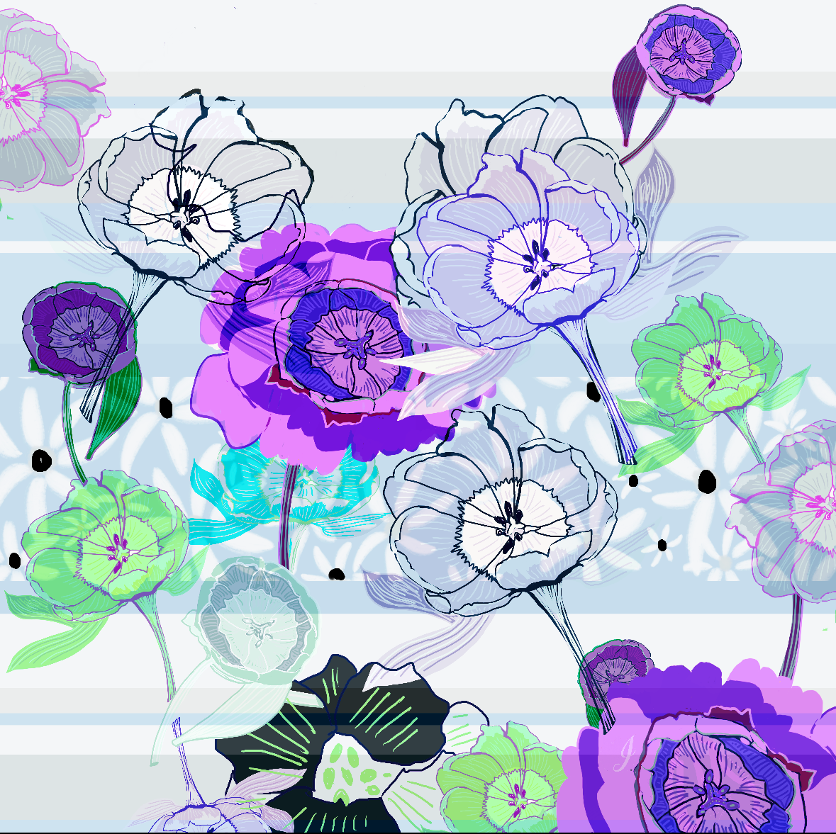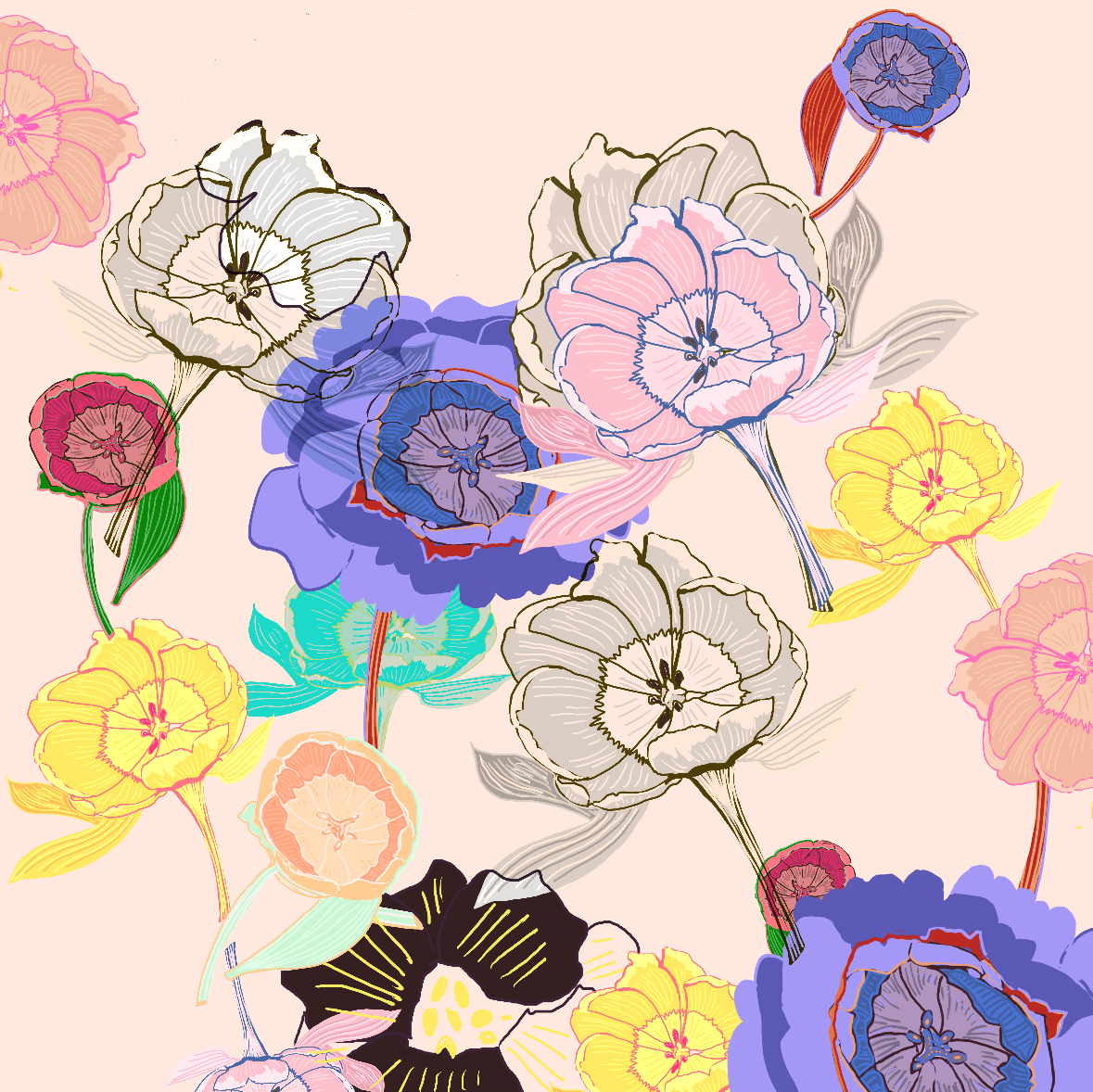 Joan Davis begins her Digital Florals with hand-drawn sketches and photo references,