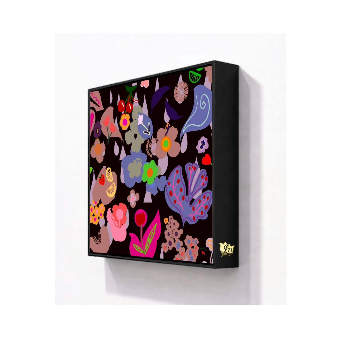The charm is a signature brand detail that adds a distinctive, collectible element to each piece. Each are carefully placed along the side edge of the frame. It transforms the artwork into a curated, collector-level statement rather than simply a print.